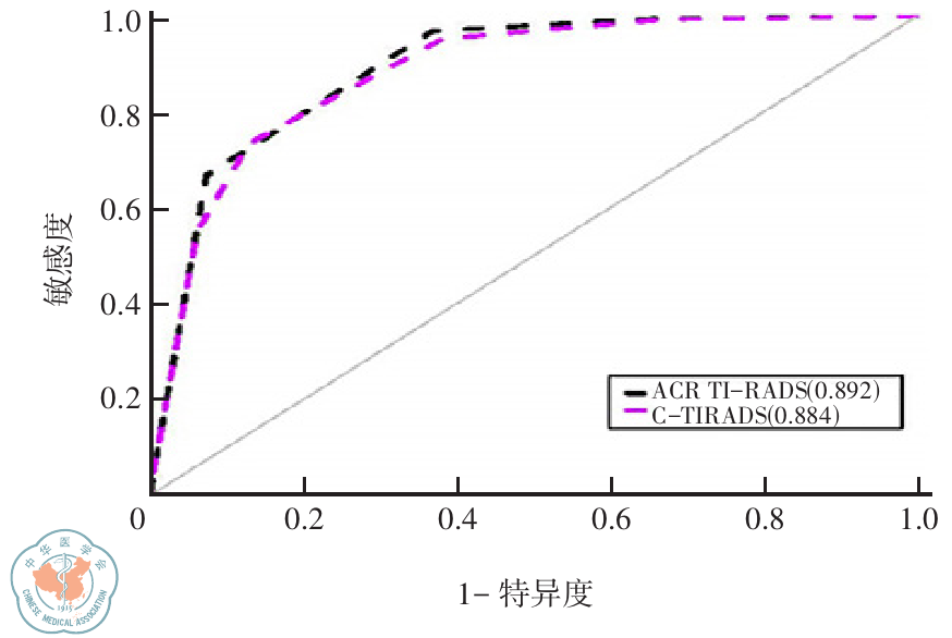 颉剑锋, 程晓桥, 刘翠云, 等. C-TIRADS与ACR TI-RADS对甲状腺良恶性结节鉴别诊断价值的对比研究[J]. 现代肿瘤医学, 2023, 31(8): 1490-1496.