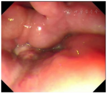 图1. 第一次胃镜检查:左侧咽部可见一隆起性病变,右侧食管入口处似可见脓性分泌物,内镜无法通过(2024-9-17)